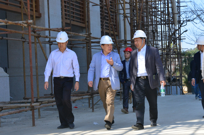 2月16日上午,建藝集團董事長兼總裁劉海云親自率領(lǐng)集團董事、副總裁顏如珍,總工程師田力,副董事長劉珊,監(jiān)事會主席陳景輝,設(shè)計研究院院長郭杰,財務(wù)總監(jiān)溫良茂,成控評估中心總監(jiān)涂國發(fā),工程總監(jiān)涂俊峰,總裁助理顏健昌,副總工程師張偉等高管,驅(qū)車來到深圳佳兆業(yè)金沙灣萬豪度假酒店項目實地考察。建藝集團工程管理中心工程三部總經(jīng)理李衛(wèi)鋒、金沙灣項目現(xiàn)場負責(zé)人呂忠新以及工程管理中心鐘樹宏、廖嘉維、樊華等熱情迎接劉董一行并陪同考察。
