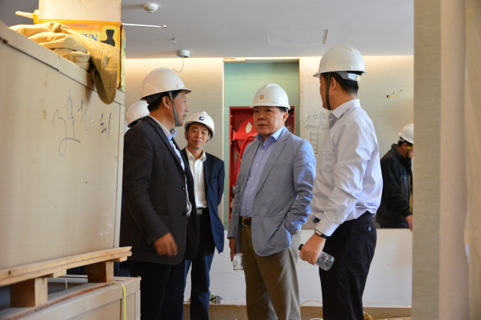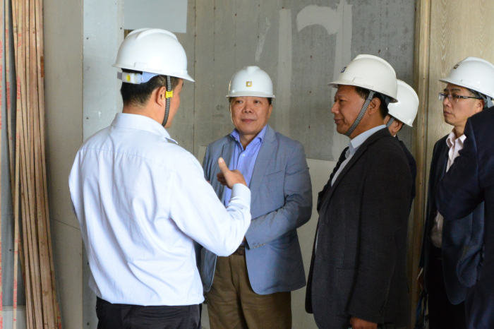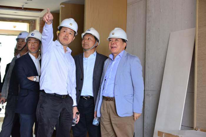 在現(xiàn)場,劉海云董事長一行詳細了解了項目整體施工情況,并對客房臥室、衛(wèi)生間、通道等區(qū)域的實際裝修進展情況進行了仔細考察。劉董在考察中要求項目相關(guān)人員要充分發(fā)揚建藝人一貫的嚴謹高效作風(fēng),尤其要做好細節(jié)把控工作,務(wù)必確保施工品質(zhì)萬無一失,同時總工辦相關(guān)領(lǐng)導(dǎo)在節(jié)點前務(wù)必做好監(jiān)督指導(dǎo)工作,對有問題的地方要及時會同項目人員在施工現(xiàn)場就地處理,上下齊心,確保工程進度及質(zhì)量。