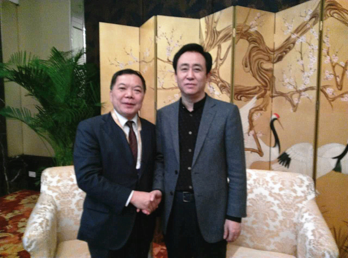 建藝集團(tuán)董事長(zhǎng)兼總裁劉海云與恒大集團(tuán)董事局主席許家?。ㄓ遥┖嫌?