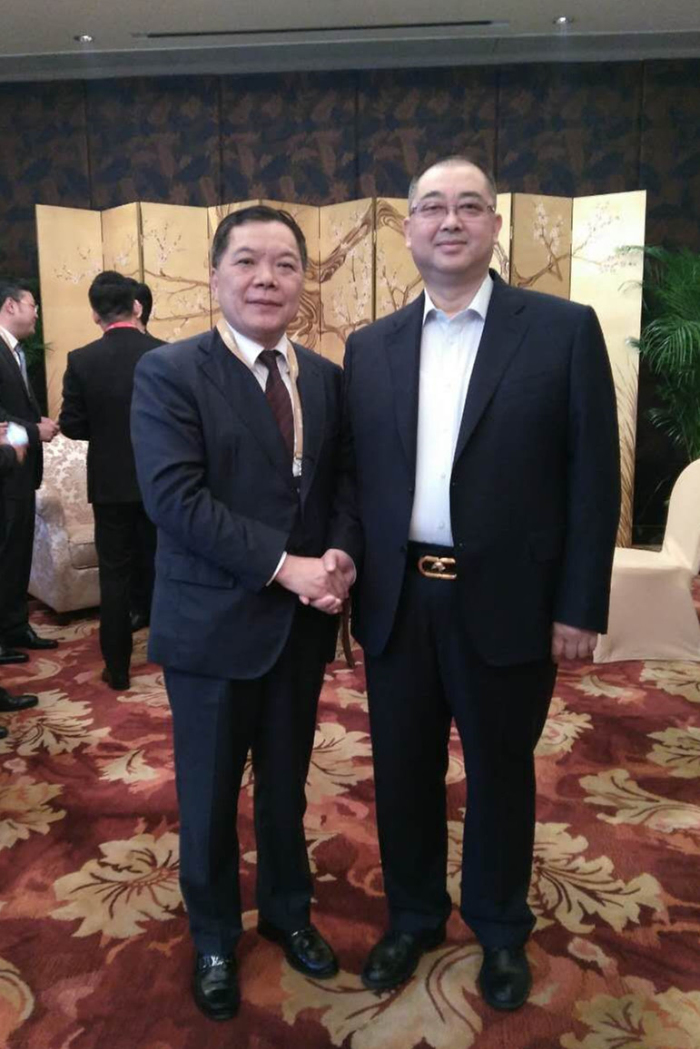 建藝集團(tuán)董事長(zhǎng)兼總裁劉海云與恒大集團(tuán)董事局副主席、總裁夏海鈞(右)合影
