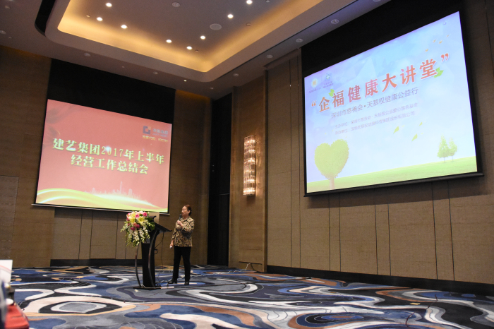 在會(huì)議期間,建藝集團(tuán)戰(zhàn)略合作伙伴、兄弟公司——深圳天基權(quán)健康科技集團(tuán)股份有限公司也派出代表出席會(huì)議,并由醫(yī)學(xué)專家姜麗婭教授為建藝同仁帶來一場直觀而生動(dòng)的健康講座,贏得與會(huì)領(lǐng)導(dǎo)的熱情掌聲。
