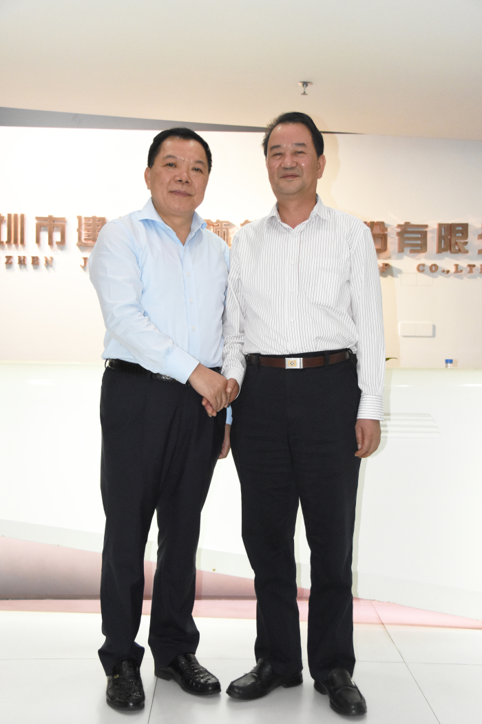廣東省梅州市政協(xié)主席陳建青(右)與劉海云董事長合影