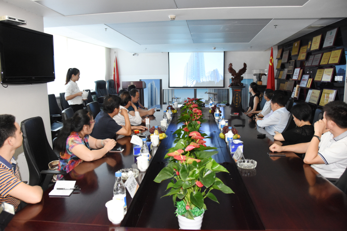陳主席一行在會議室觀看建藝集團(tuán)宣傳片