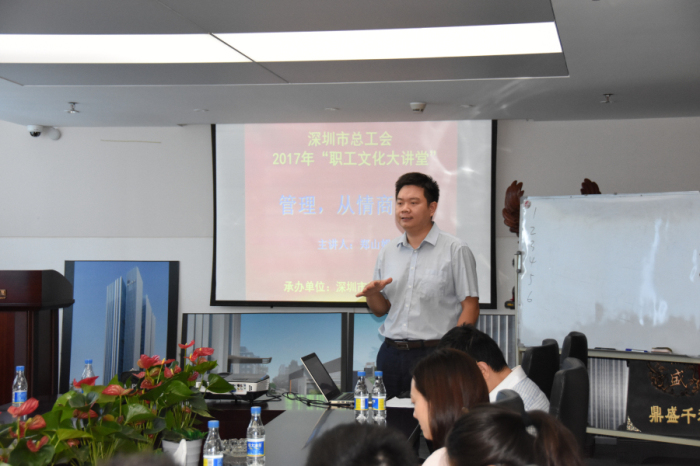 為不斷提高員工的自我管理能力,進(jìn)一步提升員工工作效率和企業(yè)整體管理水平,增強(qiáng)企業(yè)團(tuán)隊(duì)的凝聚力和競(jìng)爭(zhēng)力,8月15日下午,由集團(tuán)人力資源部主辦的“2017年建藝學(xué)院‘職工文化大講堂’培訓(xùn)”在19樓會(huì)議室如期舉行。本次培訓(xùn)的主題為“管理,從情商開始”,由深圳市總工會(huì)的政府質(zhì)量獎(jiǎng)評(píng)審專家、卓越績(jī)效(中國(guó))輔導(dǎo)專家鄭山姆講師擔(dān)任主講,集團(tuán)副總裁趙紂瑜擔(dān)任培訓(xùn)開場(chǎng)嘉賓。