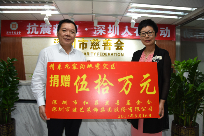 本著“一方有難、八方支援”的強(qiáng)烈責(zé)任心與使命感,在地震災(zāi)情發(fā)生后,建藝集團(tuán)董事長兼總裁、深圳市紅荔慈善基金會“榮譽(yù)會長”劉海云第一時(shí)間詳細(xì)了解災(zāi)區(qū)受災(zāi)情況并積極行動。8月18日,通過深圳市慈善會,劉董代表建藝集團(tuán)及深圳市紅荔慈善基金會向九寨溝災(zāi)區(qū)捐贈50萬元人民幣,用于解決當(dāng)?shù)厝罕姷臑?zāi)后安置及基礎(chǔ)設(shè)施恢復(fù)與重建等,以實(shí)際行動為災(zāi)區(qū)人民重建家園盡一份力。