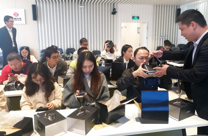 宣講會(huì)現(xiàn)場(chǎng)學(xué)生體驗(yàn)VR眼鏡