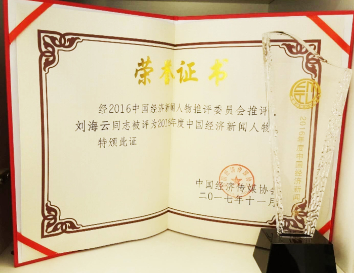 劉海云董事長(zhǎng)榮膺“2016年度中國(guó)經(jīng)濟(jì)新聞人物”