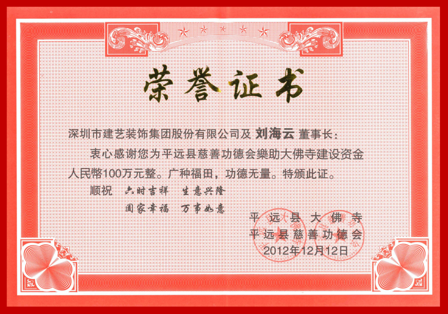 除了經(jīng)濟(jì)投資與商業(yè)合作,建藝集團(tuán)、建藝控股董事會(huì)主席劉海云多年來(lái)始終如一地向平遠(yuǎn)輸出愛(ài)心,關(guān)心、關(guān)懷著這片土地的民生保障與基礎(chǔ)建設(shè),并力所能及地支持當(dāng)?shù)胤鲐毠ぷ?。早?012年,劉海云董事長(zhǎng)就資助100萬(wàn)元善款用于平遠(yuǎn)縣大佛寺建設(shè);在2019年度“廣東扶貧濟(jì)困日”活動(dòng)中,劉海云董事長(zhǎng)再次伸出援手,向平遠(yuǎn)縣仁居鎮(zhèn)捐贈(zèng)善款100萬(wàn)元,用于支持當(dāng)?shù)氐缆窐蛄航ㄔO(shè),為當(dāng)?shù)匕傩彰撠氈赂回暙I(xiàn)力量;2020年,當(dāng)新冠肺炎疫情席卷平遠(yuǎn)縣境之時(shí),建藝集團(tuán)更是遵照劉海云董事長(zhǎng)指示,第一時(shí)間向平遠(yuǎn)縣紅十字會(huì)援助1萬(wàn)只口罩,以解當(dāng)?shù)匾咔榉揽禺?dāng)務(wù)之急,用實(shí)實(shí)在在的愛(ài)心,為平遠(yuǎn)構(gòu)筑健康安全長(zhǎng)城盡一份力……