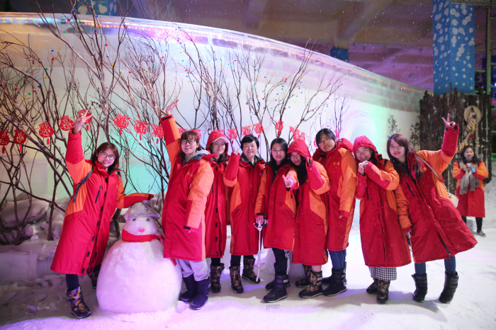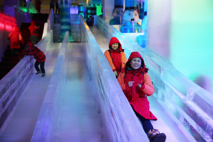 室內(nèi)外溫差極大,原本還以為只是一個(gè)比較冷的空調(diào)房,在進(jìn)入室內(nèi)的一瞬間便改變了觀念。對(duì)于許多沒有見過冰雪的南方同事來說,長(zhǎng)津冰雪大世界可謂讓人真切體驗(yàn)了一把北方世界。