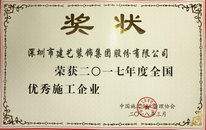 “全國優(yōu)秀施工企業(yè)”是全國建筑行業(yè)評選的企業(yè)綜合類最高榮譽。此次“雙優(yōu)”的獲獎,是對建藝集團的肯定,也是企業(yè)綜合實力的體現(xiàn)。多年來,建藝集團一直秉承“以德為先,誠信為本,構筑精品為目標”的企業(yè)宗旨,利用對專業(yè)的理解,不斷加強企業(yè)管理,提升工程質量,打造卓越的建藝裝飾品牌,不斷推動中國建筑裝飾行業(yè)蓬勃發(fā)展。