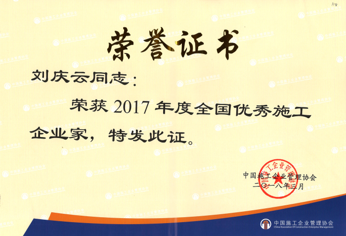 作為中國施工企業(yè)管理協(xié)會會員單位,建藝集團參與了此次評優(yōu)活動,并獲得了“全國優(yōu)秀施工企業(yè)”稱號及證書,集團領導劉慶云則獲得了“全國優(yōu)秀施工企業(yè)家”稱號及證書。