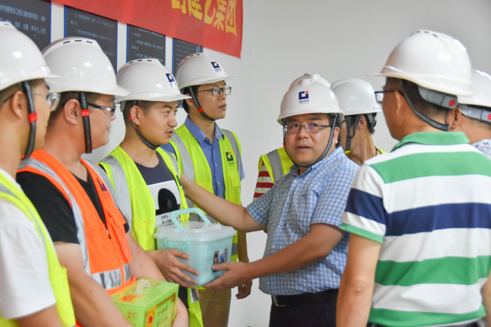 慰問活動期間,深圳市建設(shè)工會主席王貴斌、建藝集團(tuán)工會主席溫良茂、建藝集團(tuán)工程管理中心呂忠新總等一行來到項目工地,實(shí)地查看項目建設(shè)進(jìn)展情況。會上,在聽取了項目工程情況及一線員工安全生產(chǎn)等情況的匯報后,王貴斌主席著重強(qiáng)調(diào)了在保證“ 安全生產(chǎn)“的前提下完成施工,并把”工匠精神“發(fā)揚(yáng)光大。
