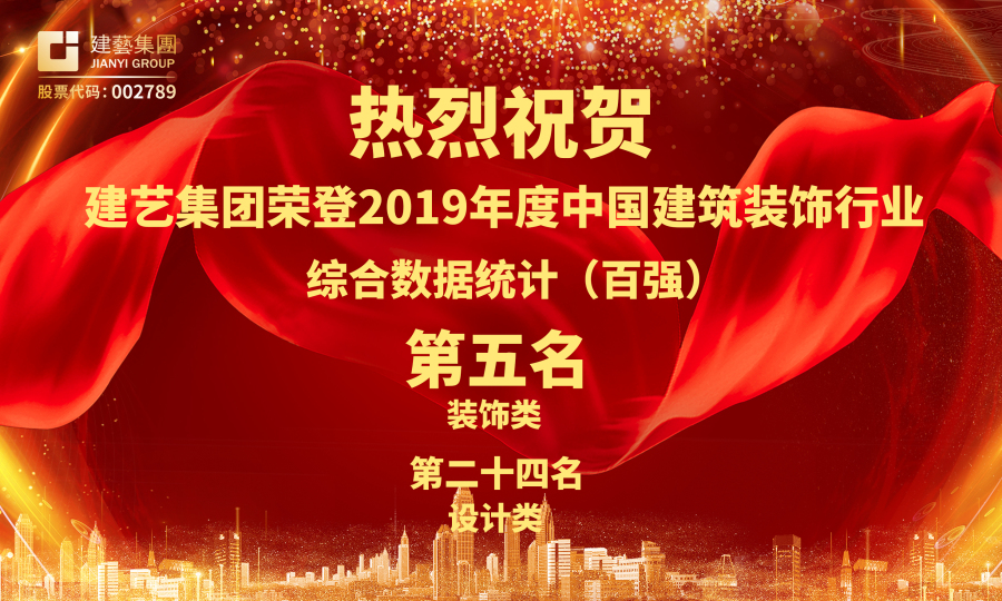 熱烈祝賀建藝集團榮登中國建筑裝飾行業(yè)百強企業(yè)第五名
