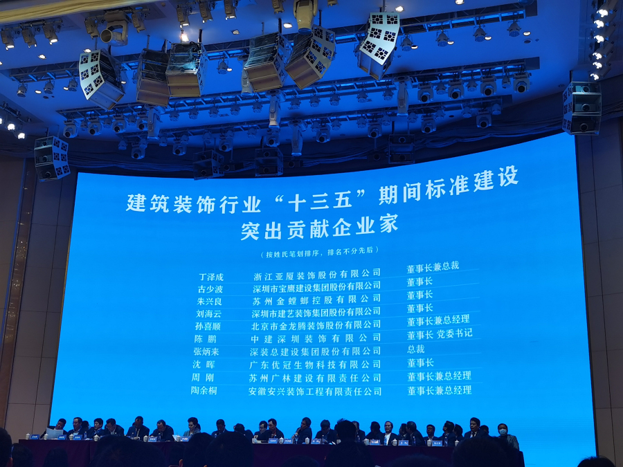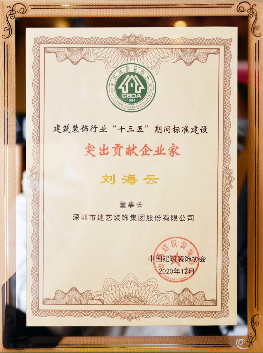建藝集團董事會主席劉海云獲評為“建筑裝飾行業(yè)‘十三五’期間標準建設突出貢獻企業(yè)家”