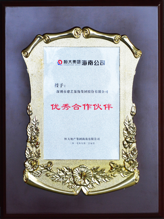 建藝集團獲評為恒大地產集團海南有限公司“優(yōu)秀合作伙伴”