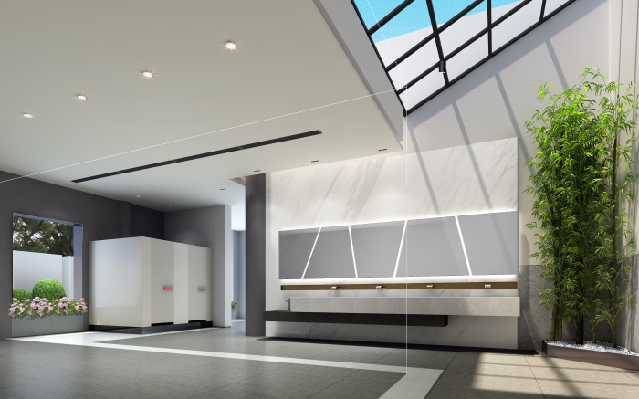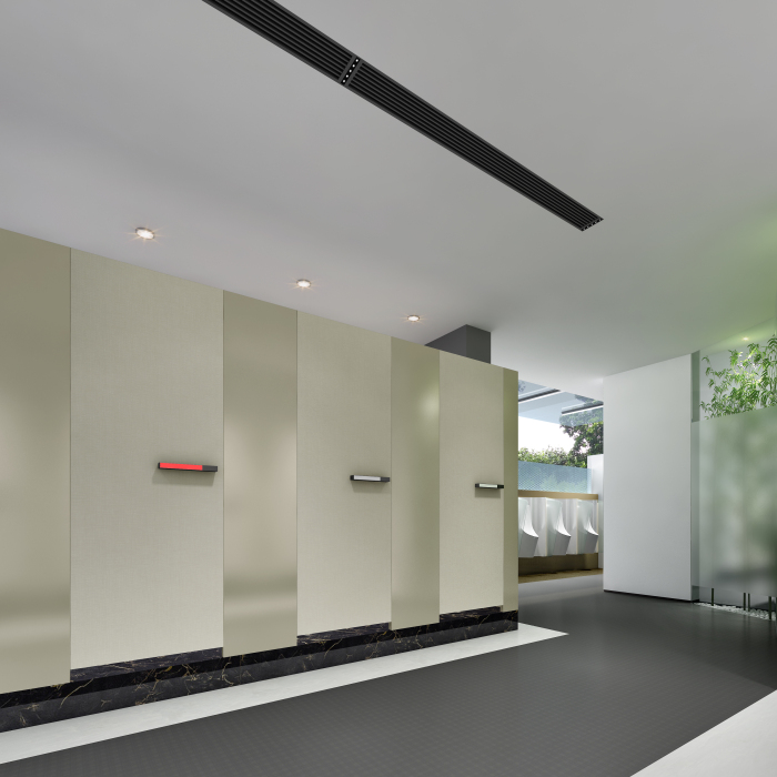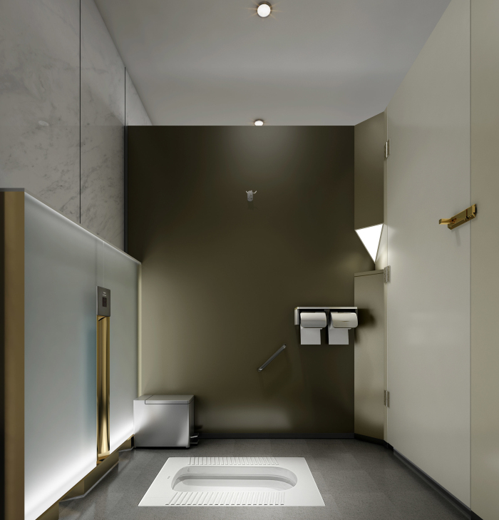 結(jié)合南山的定位——世界級創(chuàng)新轉(zhuǎn)型濱海城區(qū),本公廁要做到“顛覆傳統(tǒng),打開思路”,按全市最高標(biāo)準(zhǔn)五星級。但受結(jié)構(gòu)層高和風(fēng)管影響,空間高度達(dá)不到五星,力爭在使用體驗(yàn)方面達(dá)到最精致高端化。