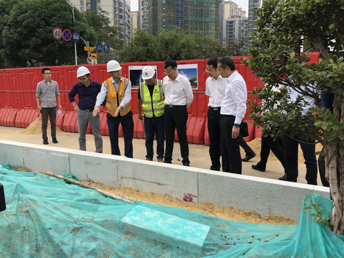 11月13日,寶安區(qū)委書記姚任、副區(qū)長朱恩平帶隊到四方公園項目現(xiàn)場,就景觀設(shè)計方案等進行考察。華潤、建藝集團等單位的相關(guān)負責人在現(xiàn)場陪同參觀,并就項目整體設(shè)計、施工要點等進行了介紹及匯報。