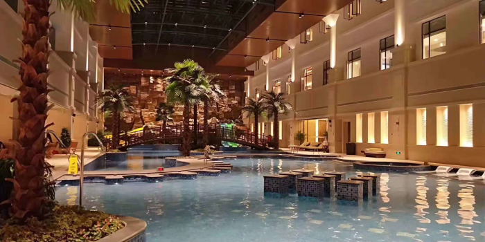 由建藝集團承建的遼陽湯泉驛鉑域酒店項目精裝修工程二標段,施工范圍包含一層水區(qū)公園、酒店客房二至六層、負一層員工宿舍及后勤區(qū)(含地下廚房洗衣房)、負一夾層員工宿舍、客房布草等。