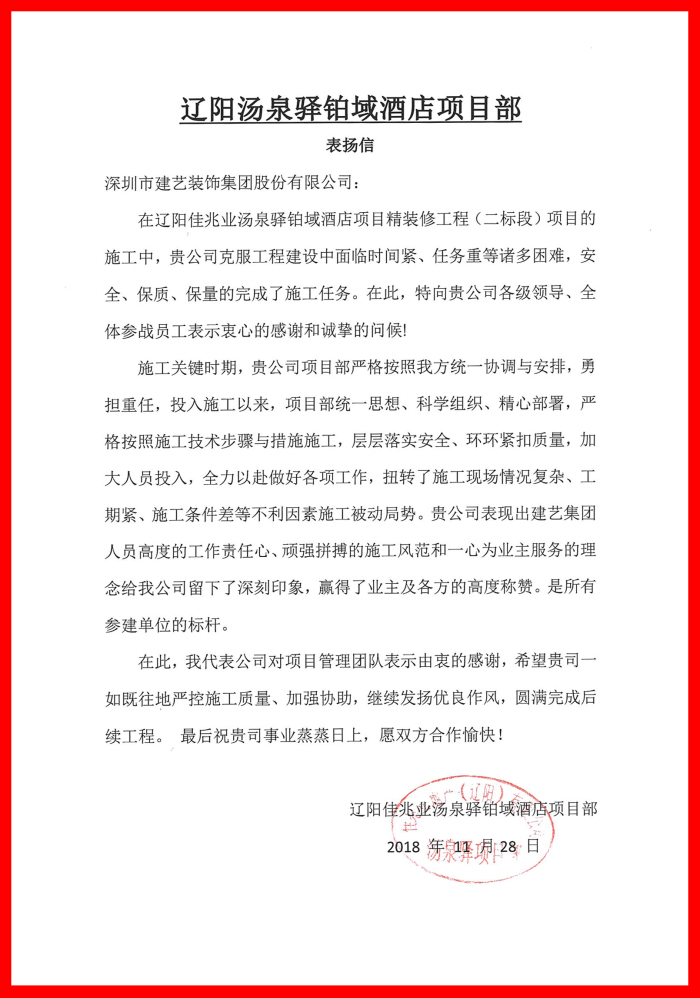 建藝集團項目部所獲表揚信