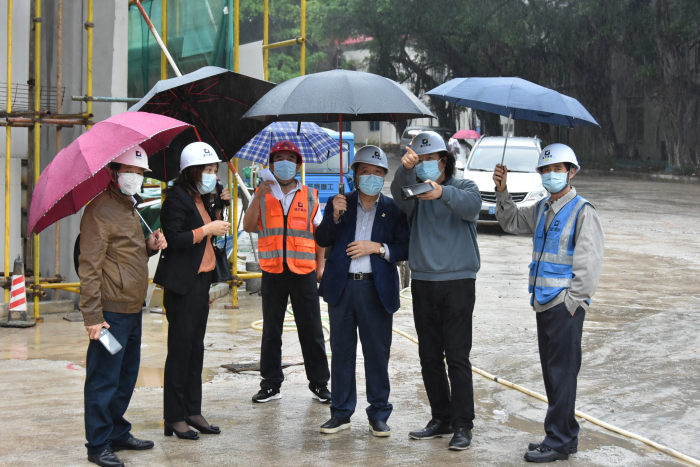 雨中的劉海云董事長(zhǎng)心中牽掛著項(xiàng)目的每一個(gè)環(huán)節(jié)