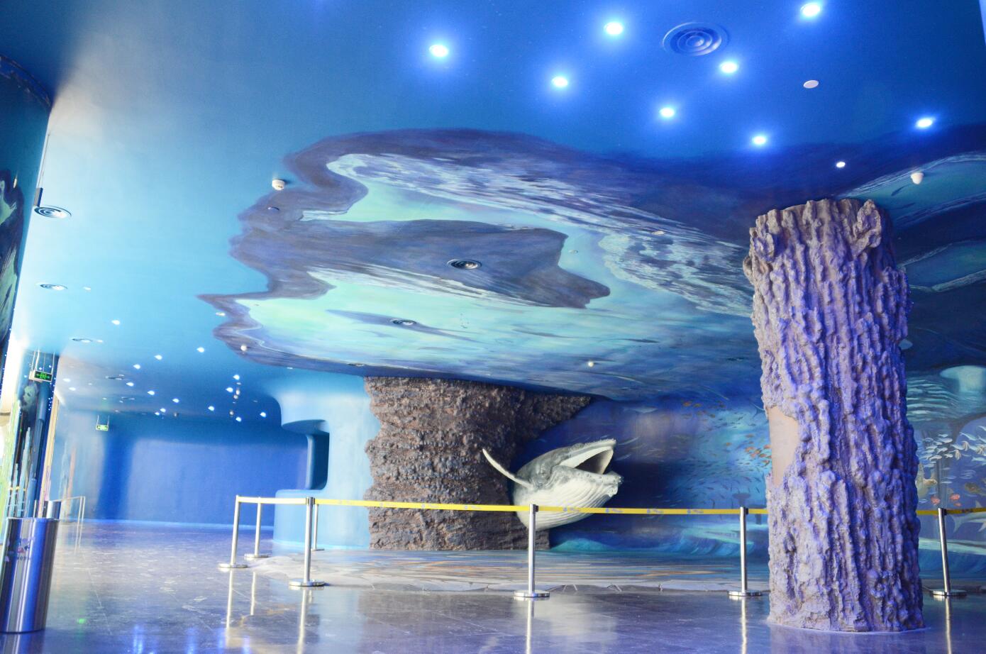 深圳歡樂海岸海洋奇夢館位于歡樂海岸購物中心二樓西側(cè),是一個(gè)集科普教育、欣賞娛樂為一體的多功能水族館。館內(nèi)設(shè)置了潛入深海區(qū)、珊瑚及水母活體展示區(qū)、珊瑚礁3D劇場、奇夢屋、海獅劇場、生態(tài)教室等主題區(qū)域,造型奇異多變,或?yàn)闊艄庋谟常驗(yàn)榱Ⅲw投影,或?yàn)槊靼底兓茫層慰驮诟惺苷鸷秤^賞體驗(yàn)的同時(shí),也學(xué)習(xí)到了豐富的海洋知識。本工程應(yīng)用的異型GRG天花及墻面裝飾板及LED高效節(jié)能燈具的應(yīng)用獲得過“2014年全國建筑裝飾行業(yè)科技創(chuàng)新成果獎(jiǎng)”。