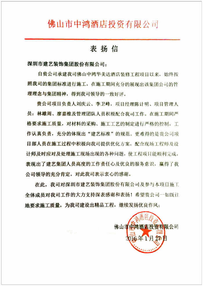 [下一篇]關(guān)于永州龍華華美達(dá)廣場酒店及財(cái)富廣場外幕墻工程的表揚(yáng)信