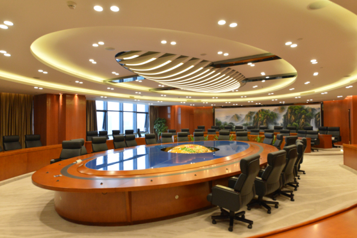 總部會議室,天花造型設計與家具擺設相呼應,完美如畫。