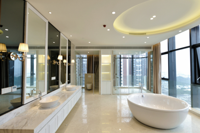 華耀城頂層是以五星級酒店標準裝修的客房,專為接待尊貴客人而準備??偨y(tǒng)套房設有吧臺,寬敞到可以繞著大浴缸騎自行車的浴室,且浴室專門設有桑拿室。豪華的裝修不僅彰顯了企業(yè)的實力與氣勢,更是凸顯了對客人的尊重。