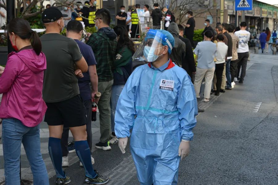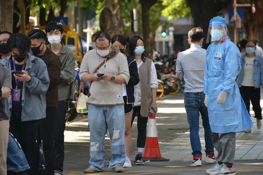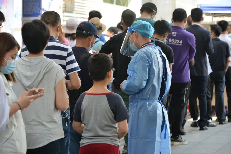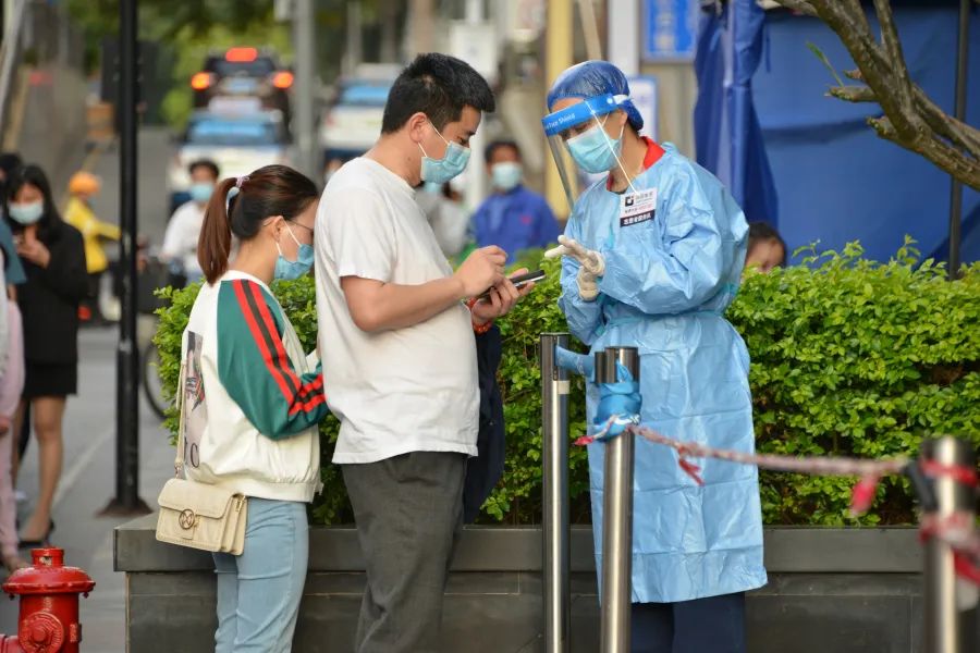 建藝志愿者在核酸檢測(cè)點(diǎn)疏導(dǎo)群眾
