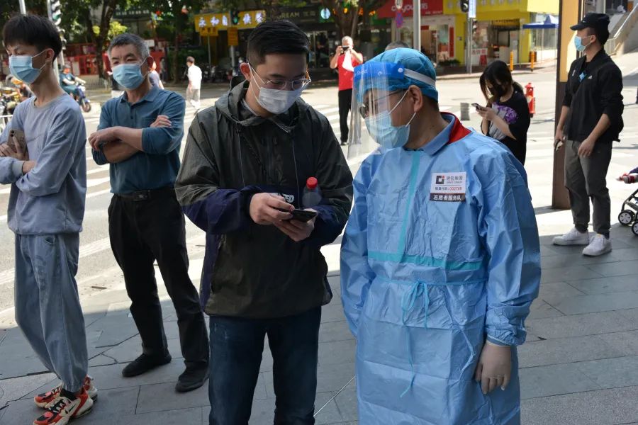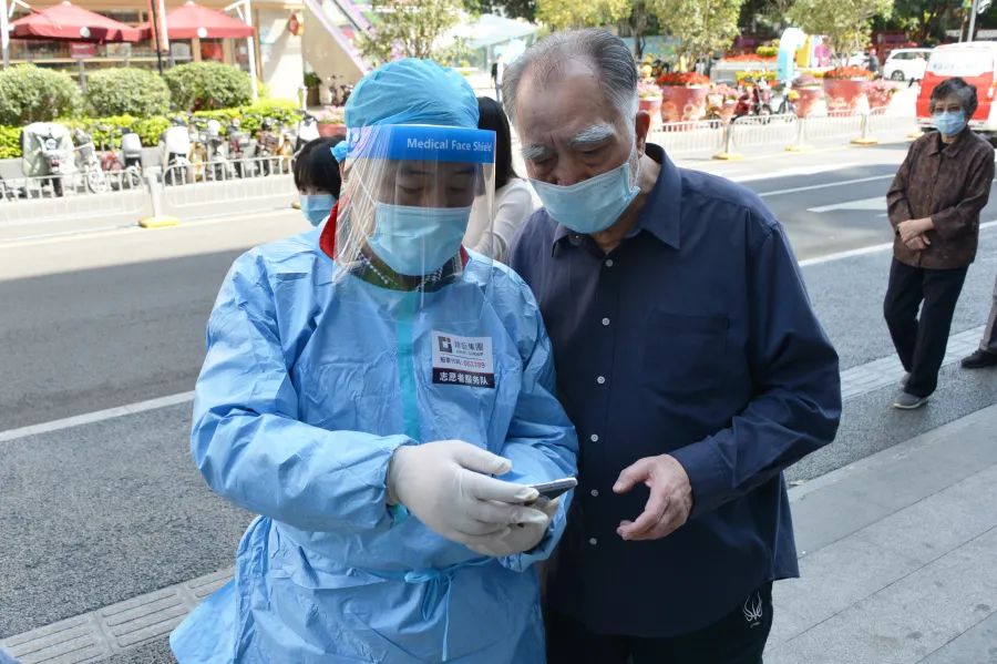 組圖:建藝志愿者在核酸檢測(cè)點(diǎn)為群眾提供便利