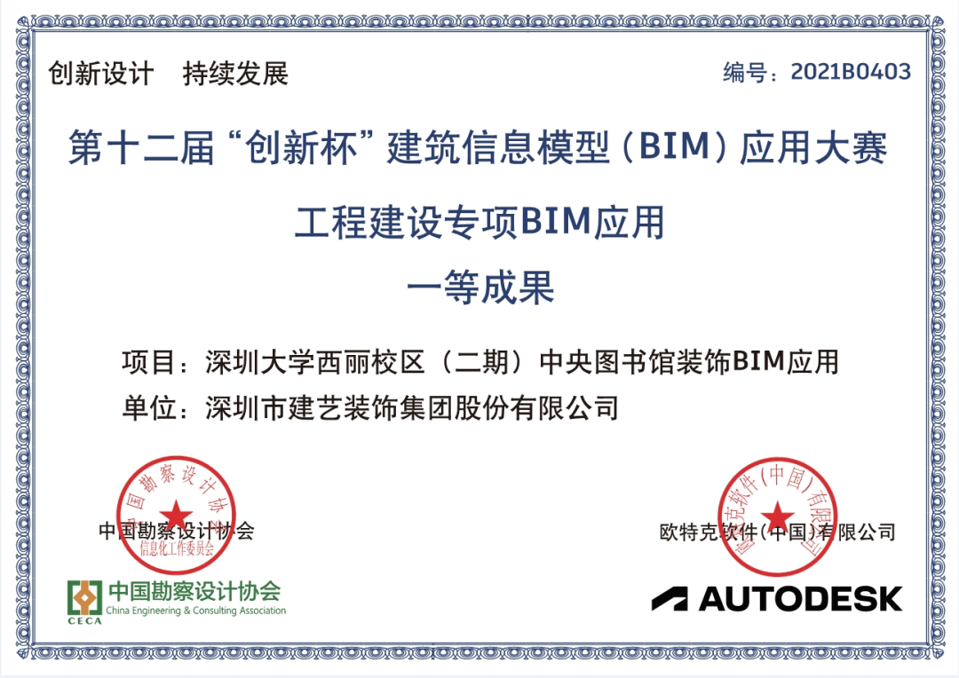建藝集團(tuán)利用BIM技術(shù)提高精細(xì)化建造水平,建造質(zhì)量精品工程,通過BIM模型進(jìn)行深化設(shè)計(jì),優(yōu)化施工方案、施工節(jié)點(diǎn)、材料排版,利用模型生成精裝修深化排布圖紙,指導(dǎo)現(xiàn)場施工,同時基于BIM模型,對方案安全性、合理性、可建造性等方面進(jìn)行審核,做到提前更正,降低變更風(fēng)險,提高工程質(zhì)量。在提升提高工作效率方面更是通過深圳市建筑工務(wù)署B(yǎng)IM協(xié)同管理平臺進(jìn)行日常維護(hù)和管理,使各項(xiàng)目參與方可在同一模型上進(jìn)行多方位立體溝通,提高信息化管理水平,提供施工效率。憑借創(chuàng)新的BIM應(yīng)用,項(xiàng)目榮獲了第十二屆“創(chuàng)新杯”建筑信息模型(BIM)應(yīng)用大賽工程建設(shè)專項(xiàng)BIM應(yīng)用一等成果的榮譽(yù)。