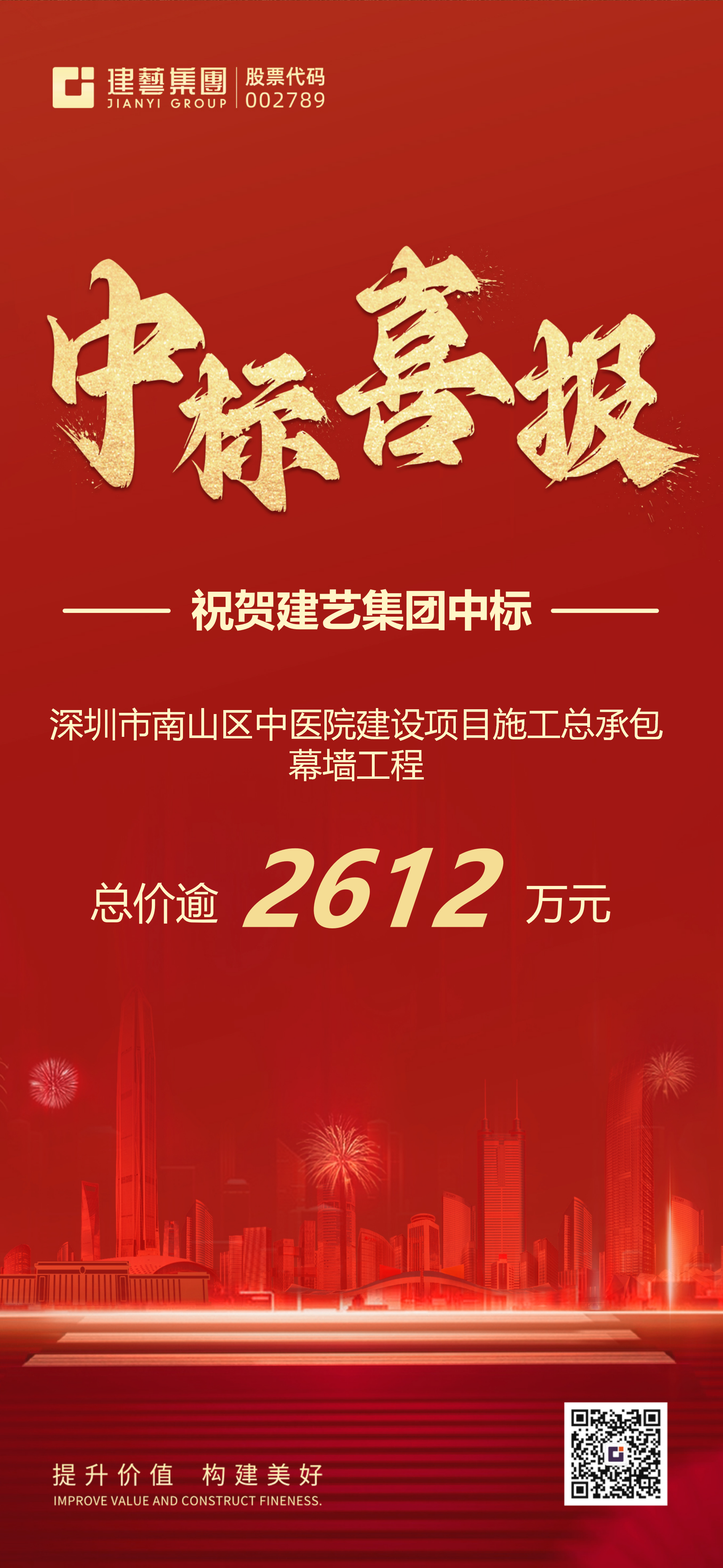 近期,深圳市建藝裝飾集團(tuán)股份有限公司及旗下子公司廣東粵明綠能科技有限公司中標(biāo)捷報(bào)頻傳,接連中標(biāo)多項(xiàng)重點(diǎn)項(xiàng)目,總價(jià)逾2.11億元。
