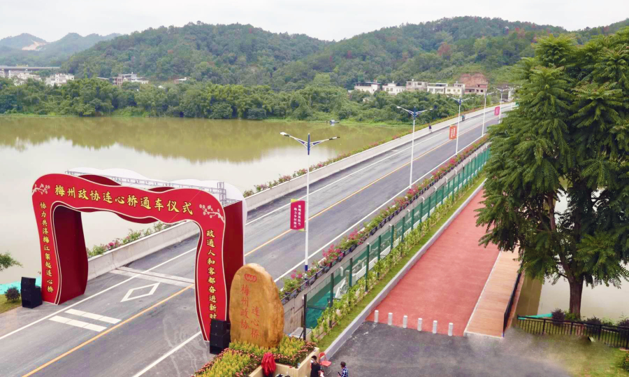 據(jù)了解,梅州政協(xié)連心橋連通梅縣區(qū)梅南鎮(zhèn)和梅江區(qū)長沙鎮(zhèn),橋長278米,橋面寬12米。去年5月,梅州市政協(xié)發(fā)出捐資建設倡議,得到了廣大委員及社會愛心人士的積極響應,共籌集資金1300多萬元。其中,劉海云委員慷慨捐贈100萬元,全力支持連心橋建設。