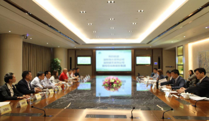 建藝集團董事長兼總裁劉海云與雅居樂集團董事局主席陳卓林進行商務洽談