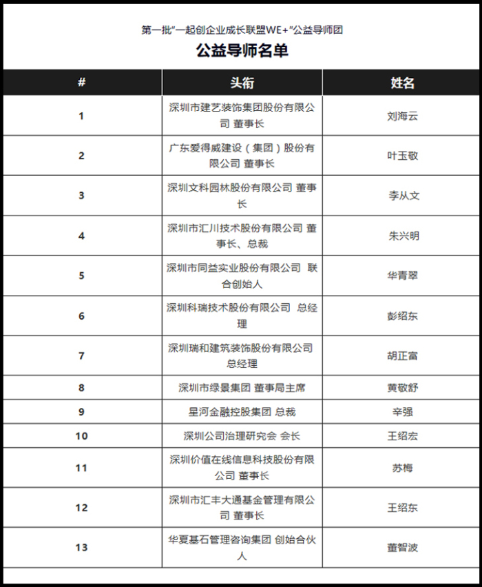 大咖云集——第一批“一起創(chuàng)企業(yè)成長(zhǎng)聯(lián)盟(We+)”公益導(dǎo)師名單