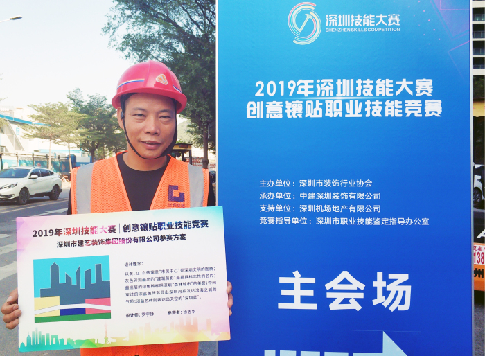 為全面貫徹落實(shí)黨的十九大提出的“建設(shè)知識(shí)型、技能型、創(chuàng)新型勞動(dòng)者大軍,弘揚(yáng)勞模精神和工匠精神,營(yíng)造勞動(dòng)光榮的社會(huì)風(fēng)尚和精益求精的敬業(yè)風(fēng)氣”要求,加快培養(yǎng)和選拔高技能人才,深圳市裝飾行業(yè)協(xié)會(huì)于近日在深圳市寶安區(qū)領(lǐng)航城領(lǐng)逸大樓舉辦2019年深圳技能大賽——?jiǎng)?chuàng)意鑲貼職業(yè)技能競(jìng)賽。建藝集團(tuán)作為深圳市裝飾行業(yè)協(xié)會(huì)常務(wù)副會(huì)長(zhǎng)單位,積極響應(yīng)競(jìng)賽號(hào)召,組織內(nèi)部人員參賽。其中,工匠徐志華突圍近百人初賽,代表集團(tuán)公司出征本次職業(yè)技能競(jìng)賽決賽。