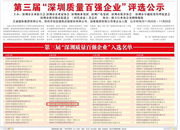 【藝動態(tài)】第三屆“深圳質(zhì)量百強(qiáng)企業(yè)”評選公示:建藝集團(tuán)再次榮譽(yù)入選
