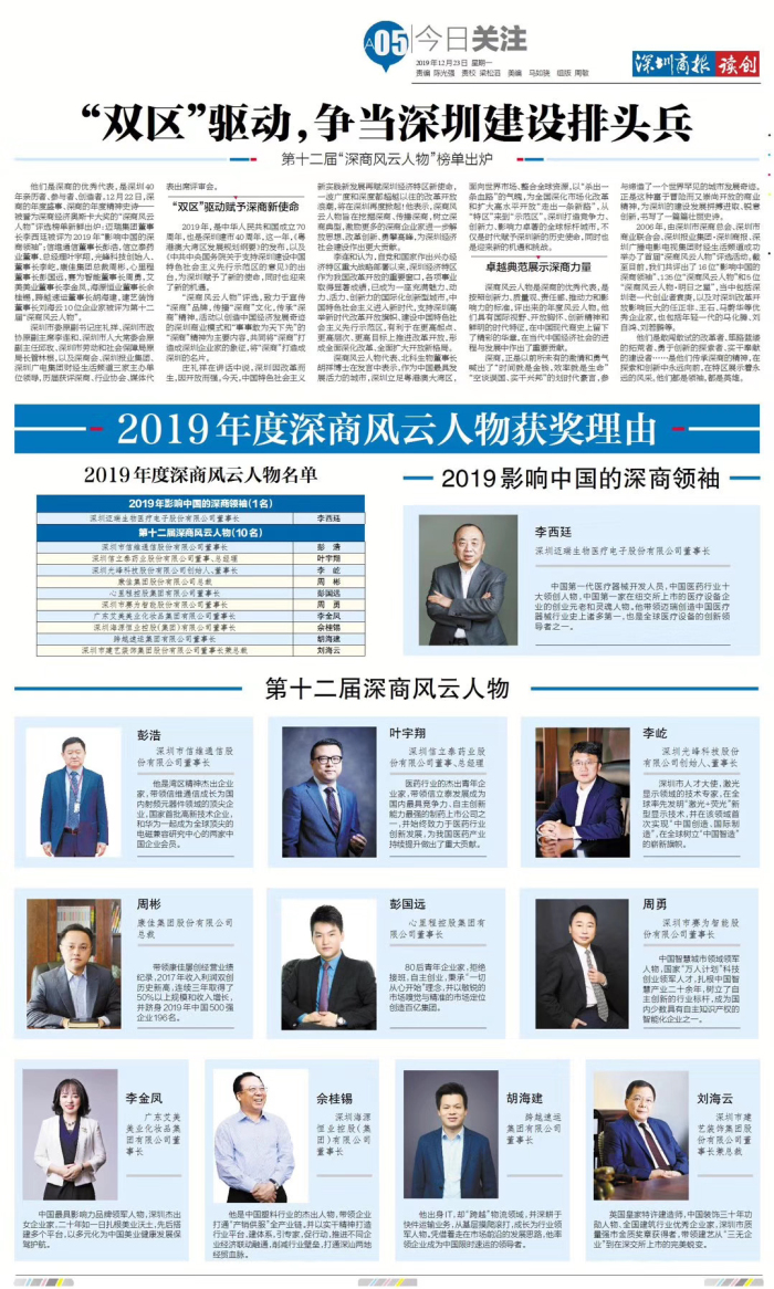 他們是敢闖敢試的改革者、篳路藍縷的拓荒者、勇于創(chuàng)新的探索者、實干奉獻的建設者……是他們傳承深商的精神,在探索和創(chuàng)新中永遠向前,在特區(qū)展示著永遠的風采。他們都是領袖,都是英雄。