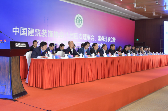 當(dāng)天下午,備受矚目的中國建筑裝飾協(xié)會(huì)八屆四次理事會(huì)、常務(wù)理事會(huì)暨2019年中國建筑工程裝飾獎(jiǎng)發(fā)布會(huì)成功召開。中國建筑裝飾協(xié)會(huì)名譽(yù)會(huì)長馬挺貴、會(huì)長劉曉一、副會(huì)長田思明、副會(huì)長陳新、副會(huì)長兼秘書長張京躍等領(lǐng)導(dǎo)出席會(huì)議。建藝集團(tuán)、建藝控股董事會(huì)主席劉海云等中國建筑裝飾協(xié)會(huì)副會(huì)長,各地方裝飾協(xié)會(huì)會(huì)長、秘書長,全國各地中裝協(xié)常務(wù)理事單位、理事單位代表700余人參加了大會(huì)。
