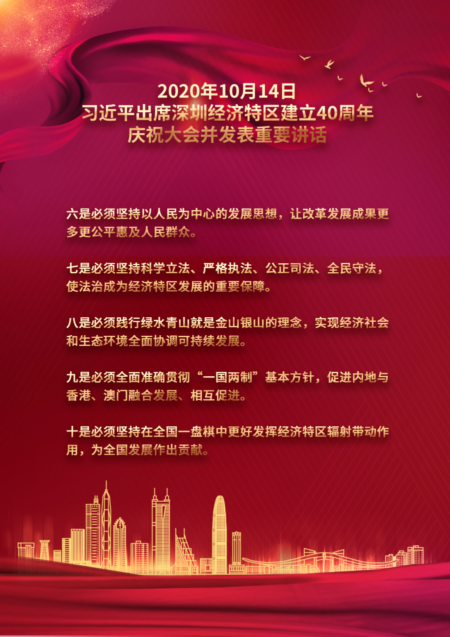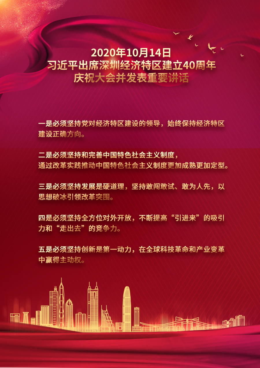 10月14日,深圳經(jīng)濟特區(qū)建立四十周年慶祝大會在深圳隆重舉行,習(xí)近平總書記發(fā)表重要講話。