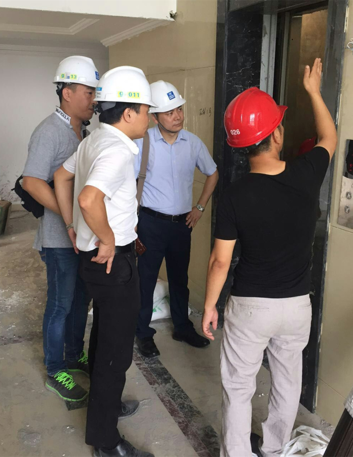 建藝集團(tuán)副總裁劉慶云(右二)在施工現(xiàn)場檢查工作