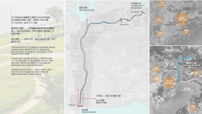 大沙河生態(tài)長(zhǎng)廊是深圳市“十二五”規(guī)劃重大項(xiàng)目“大沙河創(chuàng)新走廊”建設(shè)的重要組成部分。負(fù)責(zé)設(shè)計(jì)的深圳市國(guó)家級(jí)科技領(lǐng)軍人才、北林苑景觀及建筑規(guī)劃設(shè)計(jì)院楊海軍教授表示,它是聯(lián)通羊臺(tái)山、塘朗山森林生態(tài)系統(tǒng)與深圳灣海灣生態(tài)系統(tǒng)的生態(tài)廊道,是深圳“四帶六廊”基本生態(tài)格局中山脈支撐帶和濱海生態(tài)帶之間的重要廊道,在深圳自然生態(tài)網(wǎng)絡(luò)格局中具有重要意義。