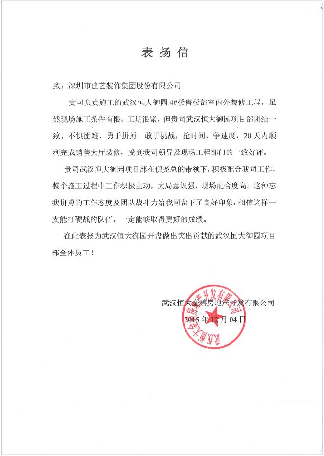 [上一篇]一封關于建藝集團武漢佳兆業(yè)一號項目部的表揚信