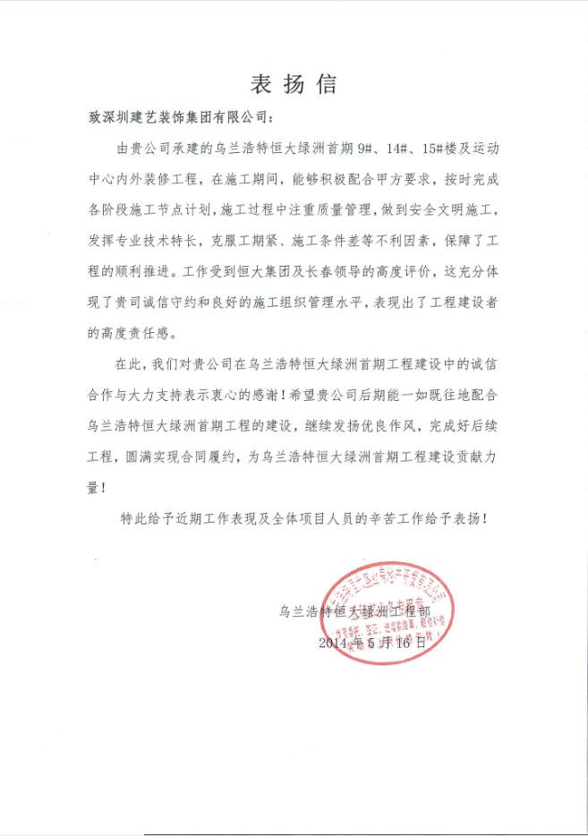 [上一篇]一封來自大連恒大帝景項目部的表揚信