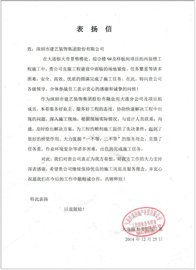 [下一篇]關(guān)于建藝集團(tuán)烏蘭浩特恒大綠洲項(xiàng)目部的表?yè)P(yáng)信
