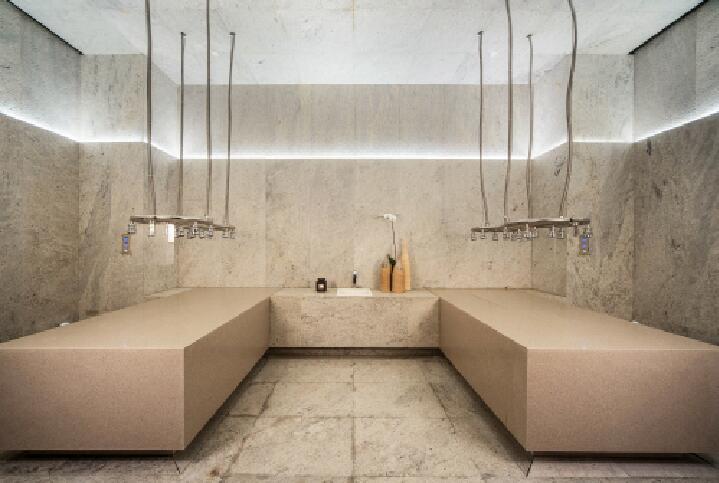 本工程的國外設(shè)計(jì)師對(duì)施工質(zhì)量可以用“挑剔”來形容。從材料質(zhì)量到裝飾細(xì)部,每一項(xiàng)都精益求精。本工程克服了巨型懸空屏風(fēng)安裝、鏤空天花造型吊頂?shù)榷鄠€(gè)施工難點(diǎn),采用了多項(xiàng)創(chuàng)新工藝,如木制作工廠化生產(chǎn)和現(xiàn)場(chǎng)組裝工藝、預(yù)拌干混砂漿技術(shù)、天然石材精加工及掛貼工藝等,有效地降低了施工污染,提高了施工效率。