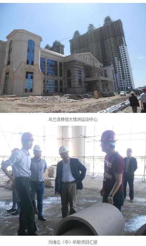 2014年5月26日-28日,應(yīng)烏蘭浩特恒大盛業(yè)房地產(chǎn)開(kāi)發(fā)有限公司的邀請(qǐng),劉海云董事長(zhǎng)在總工程師張偉、工程一部總經(jīng)理韓佛等人的陪同下,視察了內(nèi)蒙古烏蘭浩特恒大綠洲運(yùn)動(dòng)中心室內(nèi)外精裝修工程施工現(xiàn)場(chǎng),并與甲方代表進(jìn)行了親切會(huì)談。